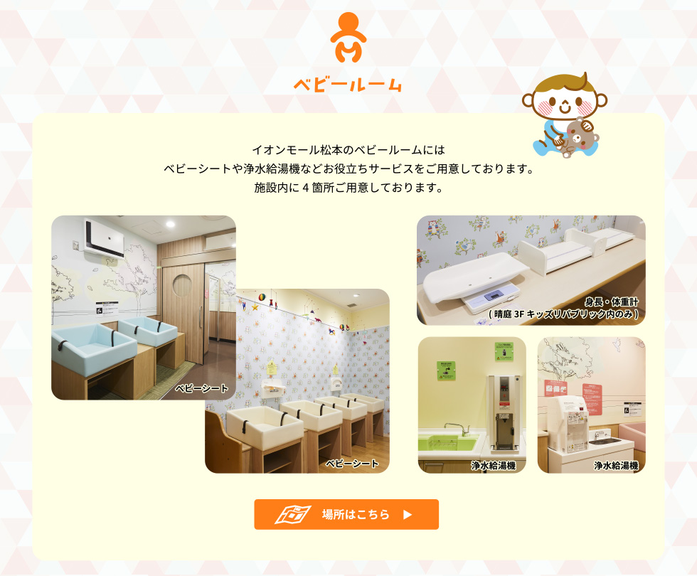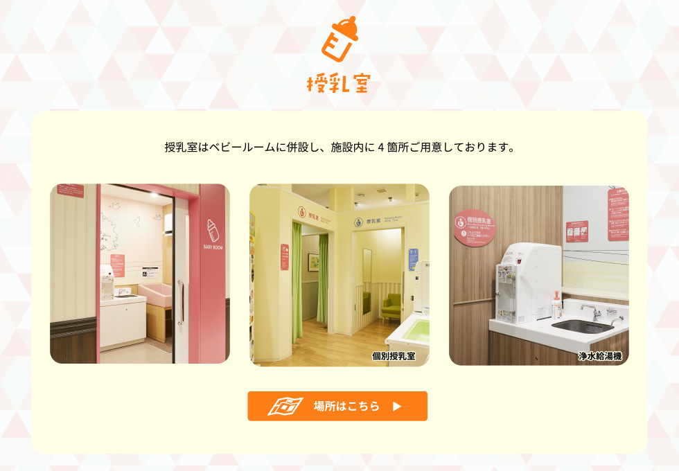 ベビールーム 授乳室 キッズトイレ・多機能トイレ ベビーカート コインロッカー
